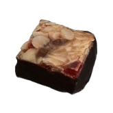Pure chocolade met gianduja en marsepein. Gianduja is hazelnootpraliné maar dan gemaakt met poedersuiker, dit maakt het zachter. Deze bonbon bevat: Lactose, Hazelnoot, Soja, Amandel