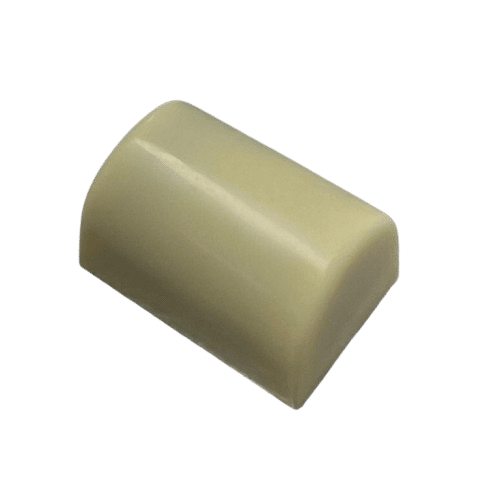 Witte chocoladebonbon met taaie karamel en stukjes roomboter spritskoek.