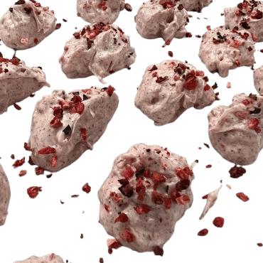 Witte chocolade, bosvruchten, gevriesdroogd fruit en een krokantje maken deze rotsjes zoals ze zijn!